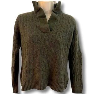 Marconi Cashmere XS Sweater. Deep Olive green. Was a Large but washed and dried, and now it will fit Women's XS (possibly cropped). One tiny hole in the top middle back, but it’s difficult to notice.