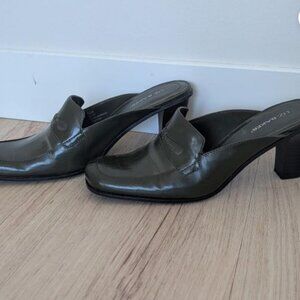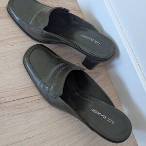 really cool olive green mules! has loafer-like details and a crocodile pattern on the front. these are really cool, such a fashion statement! great for spring and fall. feel free to make offers!