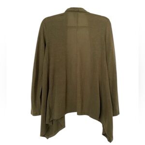 Olive green Allie & Rob open draped front long sleeve cardigan.