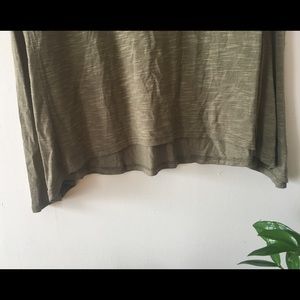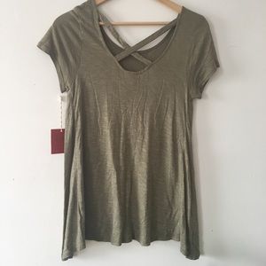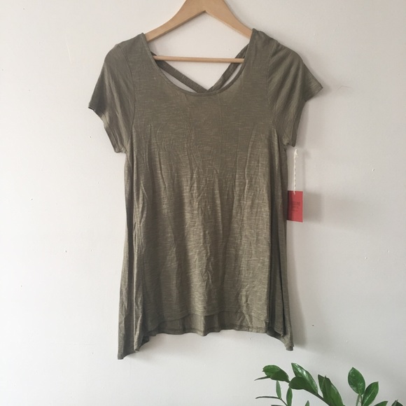 Olive top perfect for spring and summer it has a really nice cross cross on the back of the shirt for a little added touch. It's nice and flowy so it could fit a smaller medium build as well
