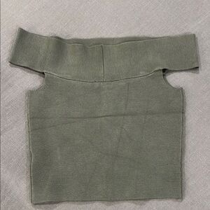 Chic and stylish olive off-shoulder top. Perfect for a casual day out or a cozy evening in. Soft fabric ensures comfort and elegance.