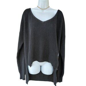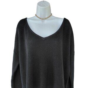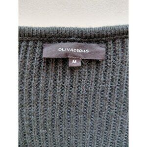 Oliveaceous Womens Ribbed V-Neck Sweater M Black Cotton,Viscose Blend & Wool