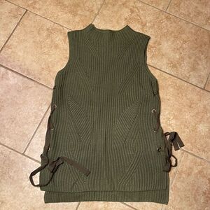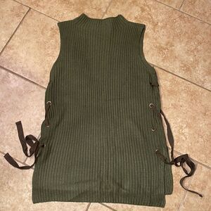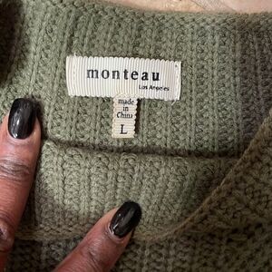 Monteau brand Olive Green sleeveless mock neck sweater. Gently worn No stains or rips. Size L