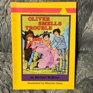 Lot of 2 Oliver Adventure Chapter books by Michael McBrier vintage Troll 1988 Hard Cover. Oliver Smells Trouble and Olivers Barnyard Blues. There is a name written on inside of cover and mark. Please see pictures for more detail.