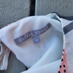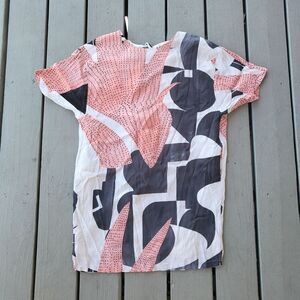 Oliver Bonas Block Print Tunic Dress Short Sleeve Knee Length Pink Black Size 12