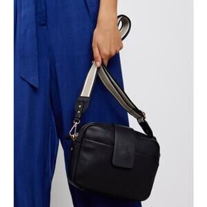 Oliver Bonas Eve Black Foldover Crossbody Vegan Leather Camera Bag NWOT