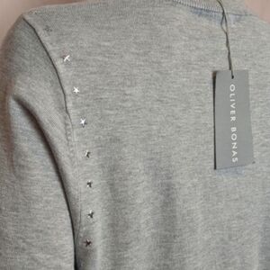 Oliver Bonas Light Gray Star Studded Knit Pullover Sweater size 8
