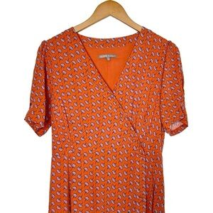 Oliver Bonas Women Floral Asymmetrical Button Up Dress Sz 12 Orange Short Sleeve
