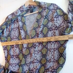 Oliver Escio M Snake Print Cardigan Duster Sweater Lightweight Boho Gray Green