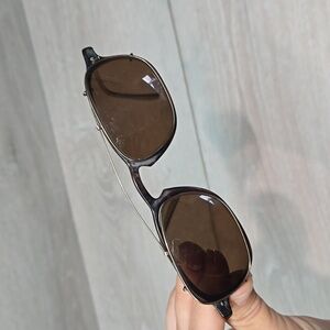 Stylish brown oval sunglasses with a sleek design. Perfect for any occasion.