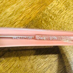 Oliver Peoples Crave OTPI sunglasses, renowned for premium quality and sophisticated design. This authentic women's cat eye, oversized frame comes in a reddish/olive tortoise pink semi-transparent colorway, with gradient brown non-prescription lenses. "Oliver Peoples Crave OTPI" and “64 11-135” are engraved on the temple arm, reflecting the designer details and providing frame measurements: 64mm lens width, 11mm bridge width, and 135mm temple length.