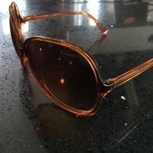 Oversized plastic frames from Oliver Peoples STYLE : Chelsea COLOR : Honey Blonde frame with a gradient lens CONDITION : small dots in lens coating from sunscreen the most flattering color!