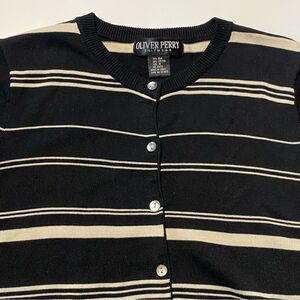 Oliver Perry Knitwear Silk/Cotton Blend Striped Lightweight Cardigan Women's M