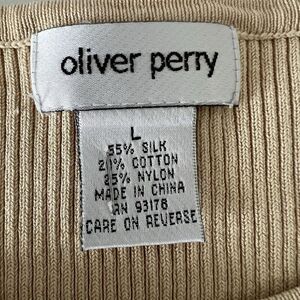 Oliver Perry Silk Blend Ribbed Knit Sweater Vest Womens Large Beige Nude VTG