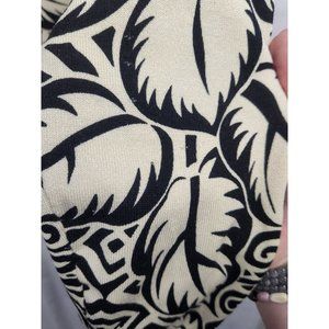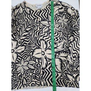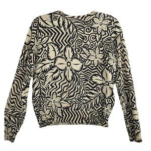 Oliver Perry Women's Size Large Cardigan Silk Blend Black Cream Tropical Print Button Up.