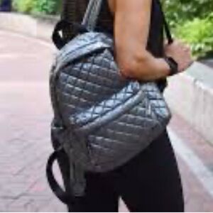 Oliver Thomas 24-7 Tablet Backpack in metallic silver.