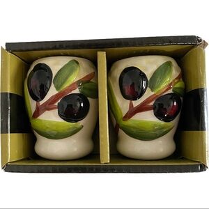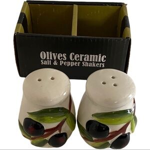 Olives Ceramic Vintage Collection Salt & Pepper Shakers Hand-Painted Set of 2 (Hand Wash Only). These are new in package.