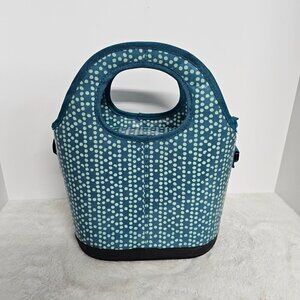 Olivet Teal Blue Polka Dot Print Insulated Structured Lunch Bag