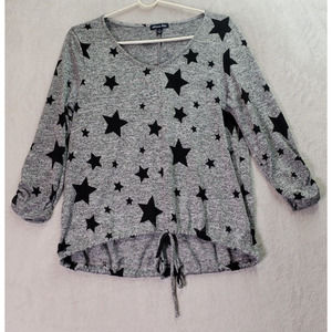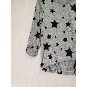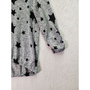 Olivia Blu Sweater Women Small Gray Star Print Knit Polyester Long Sleeve V Neck