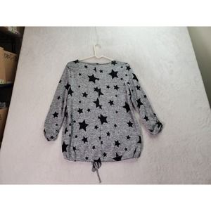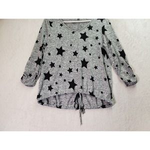 OLIVIA BLU SWEATER WOMEN SMALL GRAY STAR PRINT KNIT POLYESTER LONG SLEEVE V NECK