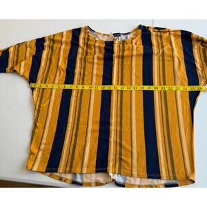 Olivia Blu Top Blouse Striped Women XL Yellow Blue Stretch short Sleeve Crew Neck Pullover Made in USA Vintage VTG Soft Comfort Comfortable Classic
