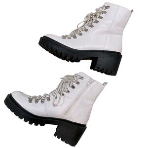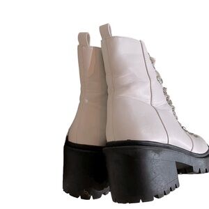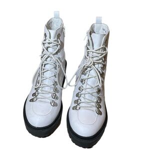 Olivia Ferguson Women’s White Lace Up Zipper Leather Chunky Heel Boots Size 6
