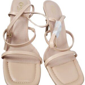 nude heels sandals ankle straps Materials PU Measurements size 9 approx: heels 4.25" Condition new