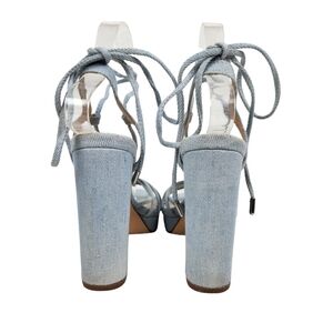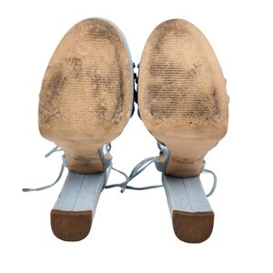 Olivia Ferragamo Hoover Blue Denim Fabric Lace Up Block Heels Women's Size 6.5