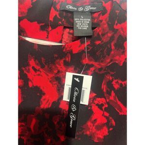 Olivia & Grace Red & Black Abstract Flowy Bell Flounce Sleeve Top Size L NWT