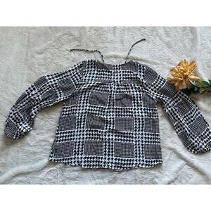 Olivia Grey Houndstooth Plaid Blouse Size L