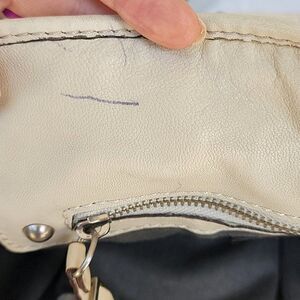Olivia Harris Bone White Soft Sheep's Leather Shoulder Bag XL in very good condition, It has a few scuff and penarks, but nothing major. Beautiful Bag!
