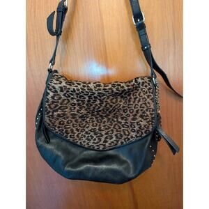 Olivia Harris By Joy Gryson OH Black Leather Hobo Bag Purse Animal Print Accent