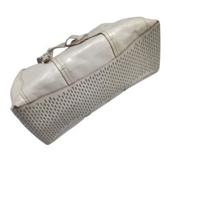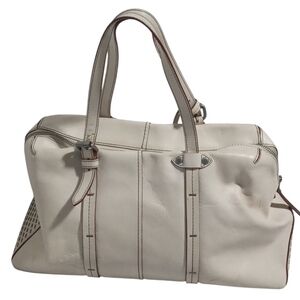 Elevate your fashion game with the Olivia Harris cream satchel handbag. This off-white beauty features a convenient zip closure and eye-catching gun metal details, making it the perfect accessory for any outfit. Keep your essentials organized and look effortlessly chic with this must-have handbag.