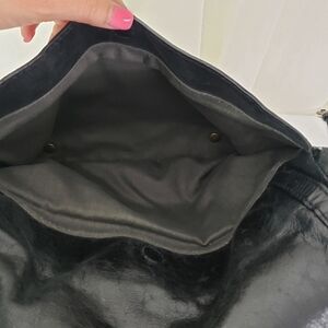 Olivia Harris black leather satchel bag multiple compartment