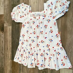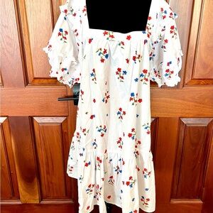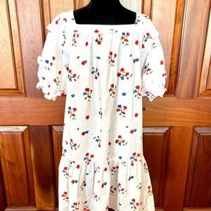 Olivia James the Label Sophie Dress Ruffle Square Neck Floral Size Large White