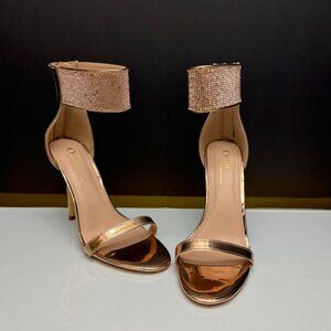 OLIVIA JAYMESE GOLD ANKLE STRAP HEELS