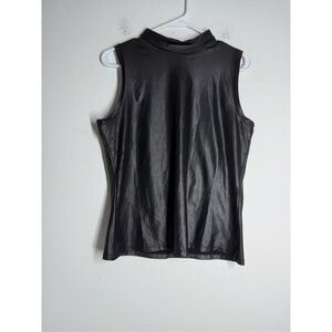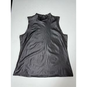Olivia Jordan Sleeves Mock Neck Shiny Tank Top Black Size L