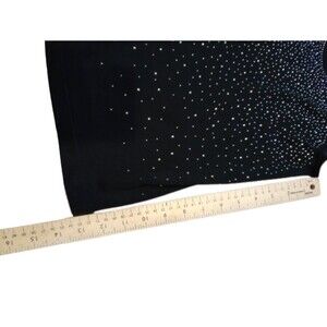 Scalloped neckline, sparkly rhinestones cover the front of shirt. Like new condition, no rips, stains or tears.