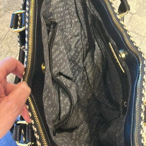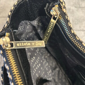 Olivia & Joy Y2K Revival Black & Tan Straw Vegan Leather Satchel Shoulder Bag