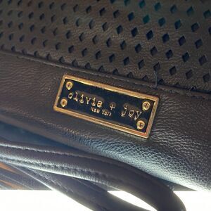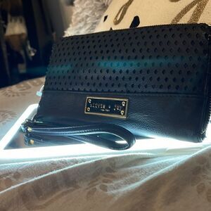 Black leather lazer cut olivia & joy new york zip around xl wallet/card case