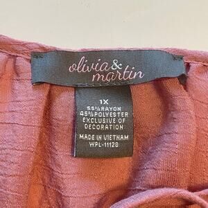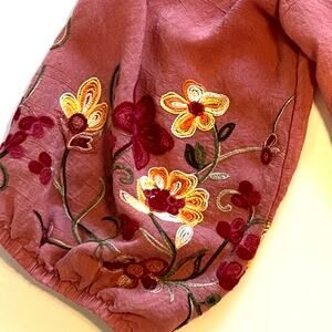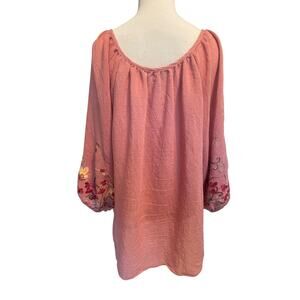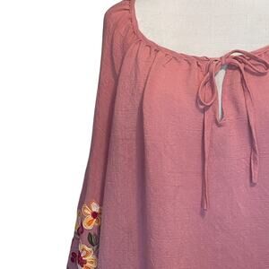 Olivia & Martin Embroidered Boho Top Womens Size 1X Mauve Peasant Floral Blouse