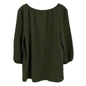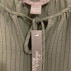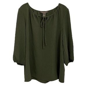 Olivia & Martin Olive Green Pinstriped 3/4 Sleeve Tie Neck Blouse NWT Size Large