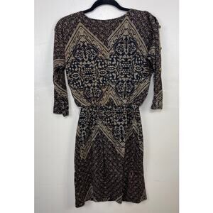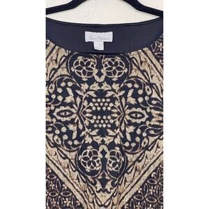 Olivia Matthews Brown and Black Floral Geometric Pattern Knit Dress