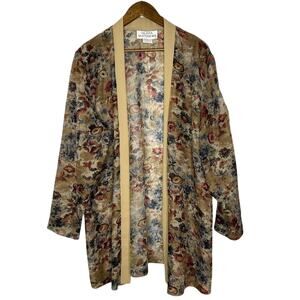 Olivia Matthews Floral Open Front Lightweight Sweater 22W Boho Vintage Style USA