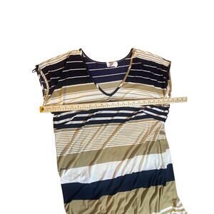 Olivia Matthews Women's Striped Midi Dress Size 3XP Short Sleeve V-Neck Stretchy