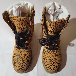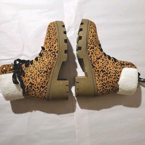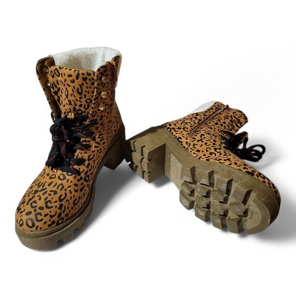 Olivia Miller Ariel Womens 8.5 Combat Boots Leopard Print Faux Suede- Fur Brown