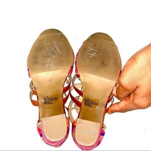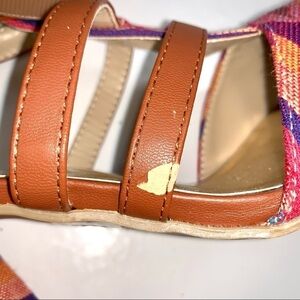 Olivia Miller strappy sandals with an Aztec, tribal, ethnic, Mayan design.