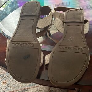 Experience effortless style with Olivia Miller's cream sandals, franco sarto featuring a chic strappy design and a comfortable cushioned insole. Perfect for casual summer outings, these sandals offer a flat sole for all-day wear.