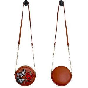 Olivia Miller Embroidered Patches Crossbody Bag Round Brown Floral Butterfly