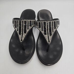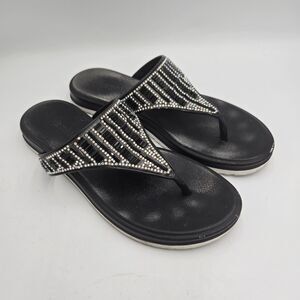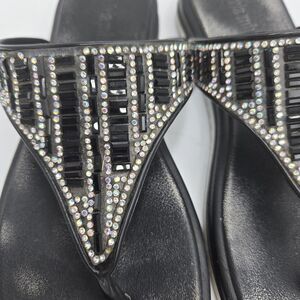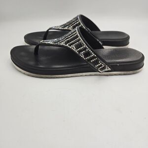 Olivia Miller Flip Flops Black Rhinestone Sandals Womens US 7 Thong Sparkle Glam